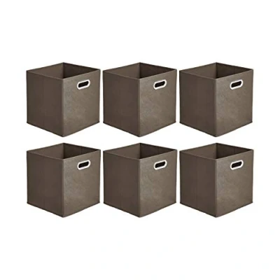 Amazon Basics Collapsible Fabric Storage Cubes with Oval Grommets 6 Pack, Taupe
