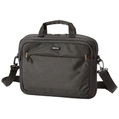 Amazon Basics Compact Laptop Shoulder Bag Carrying case with Accessory Storage Pockets (14 inch 35.6 cm) Black, 1 Pack