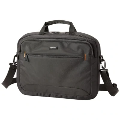 Amazon Basics Compact Laptop Shoulder Bag Carrying Case with Padded Strap and Zippered Accessory Pocket, 1 Pack, 39.6 cm, Black