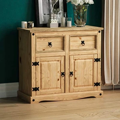 Amazon Basics Corona Sideboard, 2 Door Drawer, Solid Pine Wood Natural, 76 H x 86 W 40 D cm (Previously Movian brand)