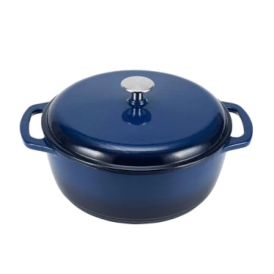 Amazon Basics Enameled Cast Iron Round Dutch Oven with Lid and Dual Handles, Heavy Duty, 5.7 L, Navy