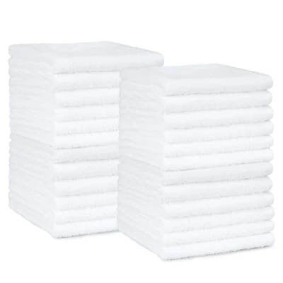 Pack of 24 washcloths for personal, office, or gym use Made of 100% looped-terry cotton for strength, high absorbency, and fast drying Soft enough for use on the face and absorbent enough for general household cleaning Reinforced edges to prevent unraveling; Machine washable and dryer safe Dimensions: 30 x 30 cm