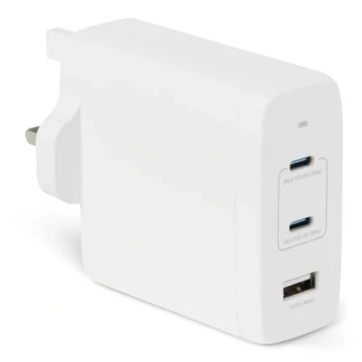 FAST CHARGING: GaN USB-C wall charger (Nano 120-watt) in White for charging devices. (Output in details: Single port max. output: Single USB A: 18W, Single USB C1/C2: 100W; Dual ports simultaneous use max. output: C1+C2: 60W+60W, C1/C2+A: 100W+12W, 3 ports simultaneous use max. output: C1+C2+A: 60W+45W+12W, C1 port is at the edge close to LED indicator and C2 port is in the middle.) 3 PORTS: 2 USB-C ports and 1 USB-A port for charging 3 devices at once; single USB-C port delivers up to 100 watts COMPATIBILITY: phones, tablets, USB-C laptops, including iPhone, Samsung, iPad/Ipad Pro, MacBook Air and more RELIABLE SAFETY: Protects connected devices from overcharge, over-voltage, overcurrent, and short circuit TRAVEL FRIENDLY: Small, ultra-compact size; supports universal input voltage of 100-240 volts