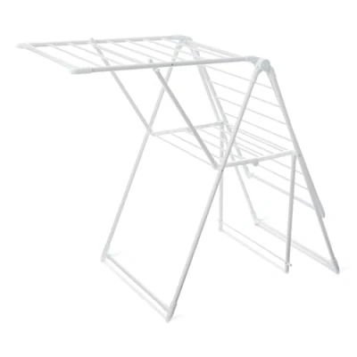 DRYING CAPACITY: Features 2 wings with 23 drying poles for maximum drying space STURDY CONSTRUCTION: White powder-coated metal frame for rust resistance and durability LOAD CAPACITY: Supports up to 22.68 kg of wet or dry laundry EASY ASSEMBLY: Quick setup with no tools required SPACE-SAVING DESIGN: Foldable wings for compact storage when not in use