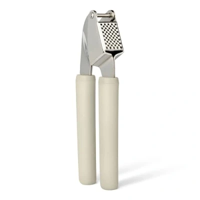 Amazon Basics Garlic Press, Soft Grip Handle, Dishwasher Safe, Linen Gray