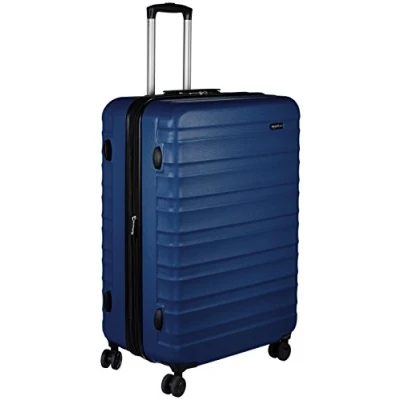 AMAZON BASICS HARDSIDE LUGGAGE: 78cm/30inches; large suitcase with extra thick ABS hardshell with scratch-resistant finish; with 4 double spinner wheels for optimum mobility; colour: navy blue CONVENIENT: Expandable design provides up to 15% extra packing capacity; with strong zippers and telescopic handle for comfortable manoeuvring (extends up to 103.8cm) ORGANISATION: Medium size suitcase with fully lined interior with divider; 150D-polyester interior organiser with 3 zippered pockets DIMENSIONS & WEIGHT: Travel bag with wheels measures 52.6 x 32.6 x 78 cm(LxWxH, including wheels); volume 105 litres; weight: 5.4 kg