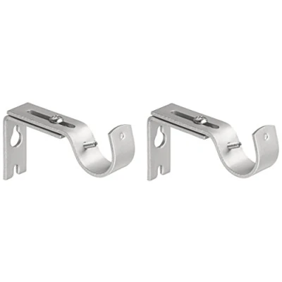 Amazon Basics Heavy Duty Adjustable Curtain Rod Wall Bracket Hooks for 1 Inch Rod, Set of 2, Silver Nickel
