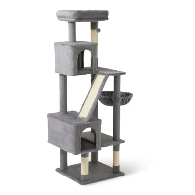 MULTIFUNCTIONAL-IN-ONE DESIGN: Amazon basics cat tree features a sisal scratching ramp, cosy hammock and cat condo with top perch in one, a dangling ball. This playhouse works perfectly as an ideal recreation paradise for your furry friend! SATISFY CAT’S NATURAL INSTINCTS: Scratching post and ramp are designed to satisfy your kittens’ daily needs in climbing and leaping on it freely, while protecting your furniture. PREMIUM MATERIAL AND QUALITY CONSTRUCTION: Our plush-covered Cat Tree is built for comfy and stability, allowing your furry babies to climb up and down safely and withstand even the most active play with comfortable and soft. ENTERTAINMENT FOR YOUR CAT: Play with the upper dangling ball while lounging on the hammock get extra fun. The natural sisal scratching ramp under the condo is designed to satisfy their instincts. Endless fun and good health! EASY TO ASSEMBLE: With the simple construction and necessary tool pack, plus detailed instruction, setting up your cat’s new playground is a breeze. Enjoy a happy life together with your furry families Built for Safety, Made for Fun – Engineered with superior stability and FSC-certified materials, this cat tower provides a secure playground, where multiple cats can climb, scratch and play simultaneously without wobbling or tipping.