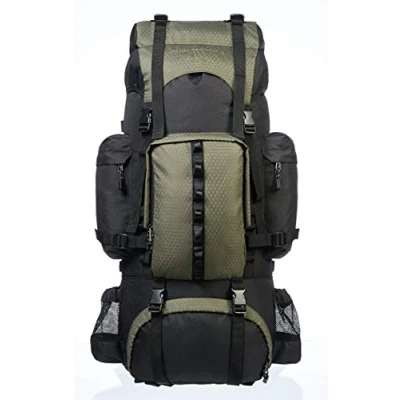 Amazon Basics Internal Frame Hiking Backpack with Rainfly, 65 L, Green