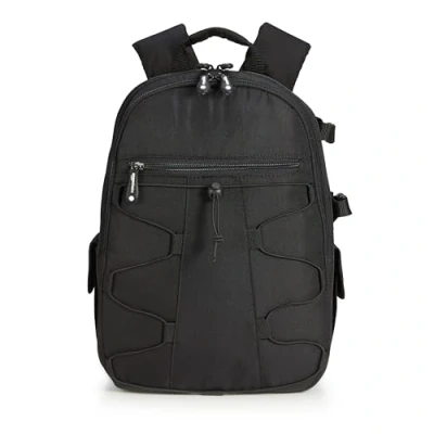 PROTECTIVE DESIGN: It contains up to 1 DSLR camera with lenses, 4 additional lenses, and 1 shoe mount flash, ensuring your gear stays secure during travel or outdoor shoots. DURABLE MATERIALS: Crafted from resilient black 60D polyester/nylon blend, offering long-lasting protection against wear and tear while maintaining a sleek appearance. WEATHER-RESISTANT: Waterproof construction shields your valuable equipment from rain, ensuring reliable performance even in challenging weather conditions. ORGANIZED STORAGE: Features a dedicated pocket for accessories, keeping essentials like batteries, memory cards, and cables easily accessible and neatly organized. DIMENSIONS: Measures 11.7 x 6.00 x 14.5 inches (29.7 x 15.2 x 36.8 cm), providing ample space for your photography gear without adding unnecessary bulk.