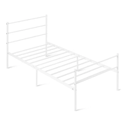 SIZE COMPATIBILITY: Single-size bed frame with headboard and footboard, designed to fit a 90 by 190 cm mattress perfectly DURABLE CONSTRUCTION: Non-foldable metal frame with white powder-coated finish and steel slats that provide reliable, even mattress support without requiring a box spring EASY ASSEMBLY: Quick setup in approximately 20 minutes with all necessary installation tools, hardware, and step-by-step instructions included PRODUCT DIMENSIONS: Accommodates 90 by 190 cm mattress, ideal for compact bedrooms, guest rooms, or children's spaces