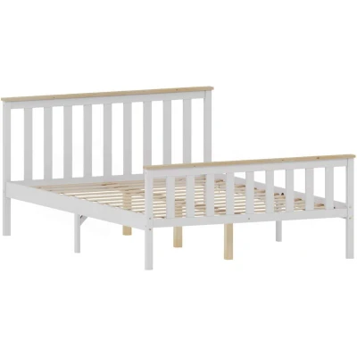 Amazon Basics Milan Double Bed, Bed Frame, Solid Pine Wood, Headboard, High Foot End Bedroom Furniture, 4ft, White/Pine, 82 x 144 196.5 cm (Previously Movian brand)