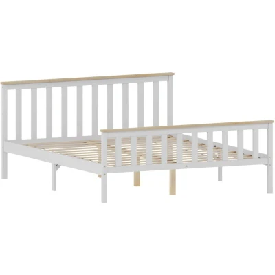 Amazon Basics Milan King Size Bed, Bed Frame, Solid Pine Wood, Headboard, High Foot End Bedroom Furniture, White/Pine, 5ft, 82 x 157 206.5 cm (Previously Movian brand)