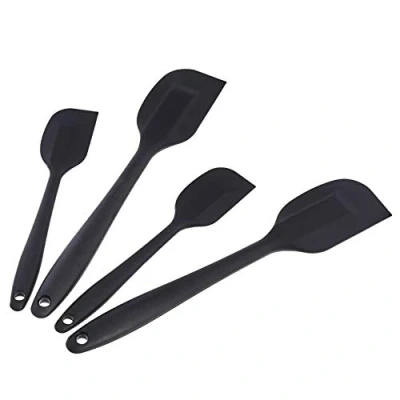 Amazon Basics Nonstick Heat Resistant Rectangular Silicone Spatula Set, Dishwasher Safe, Flexible, BPA Free, 2 Small & Large Spatulas, Pack of 4, Black, (Previously AmazonCommercial brand)