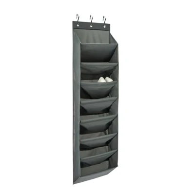 LARGE CAPACITY: Holds up to 20-22 pairs of shoes with 8 spacious tiers QUALITY MATERIALS: Constructed with durable oxford fabric and MDF board for lasting use PERFECT FIT: Each pocket measures 16.7"W x 9"D x 7"H to accommodate various shoe sizes SPACE SAVER: Slim profile design ideal for closets, dorms and small spaces EASY INSTALLATION: Includes over-the-door hooks for quick setup with no tools required