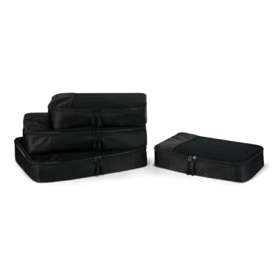 Amazon Basics Packing Cubes for Suitcases, Travel Organisers, Zipper, 4 Piece Set Bags, 2 Large and Medium, Black