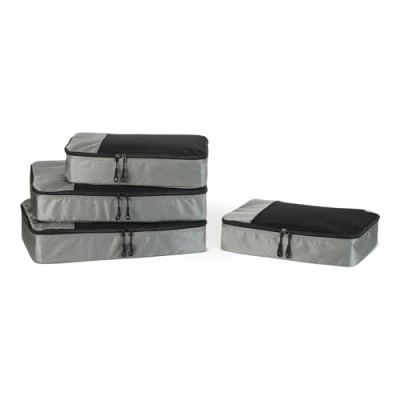 CONVENIENT DESIGN: Double zip pulls make opening/closing simple and fast EASY ORGANISATION: Mesh top panel for easy identification of contents and ventilation FABRIC PROTECTION: Soft mesh won't damage delicate fabrics PORTABLE: Webbing handle for convenience when carried by itself COMPLETE SET: Set includes 2 medium-sized cubes (35 cm x 25 cm x 8 cm) and 2 large-sized cubes (44 cm x 32 cm x 8 cm) DURABLE CONSTRUCTION: Made of high-quality fabric with finished interior seams to increase durability PREVIOUSLY AMAZON BASICS: Previously Amazon Basics, now Amazon Essentials. Packaging may vary, but item and quality remain the same
