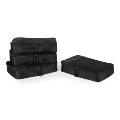 Amazon Basics Packing Cubes for Suitcases, Travel Organisers, Zipper, 4 Piece Set Bags, Medium, Black