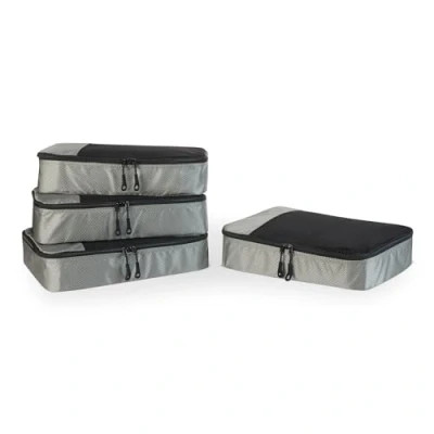 Amazon Basics Packing Cubes for Suitcases, Travel Organisers, Zipper, 4 Piece Set Bags, Medium, Gray