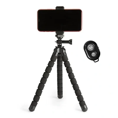 COMPATIBILITY: This tripod is designed to accommodate a variety of devices, including smartphones (up to 9.4 cm wide), GoPros, digital cameras (up to 500 grams), and webcams, making it a versatile tool for all your photography needs ANGLE ADJUSTMENTS: Instantly switch between portrait and landscape modes by simply rotating the side knob, allowing for greater flexibility in framing your shots WIRELESS REMOTE CONTROL: The included wireless remote allows you to take photos from up to 9.1 metres away (without obstacles), making it easy to capture individual, group, or wide-angle shots without needing to rush back to the camera FLEXIBLE LEGS FOR STABILITY: The tripod's flexible legs can wrap around bicycles, poles, branches, and more, providing seamless stability on various surfaces and enabling you to set up shots in unique locations IDEAL FOR ALL SKILL LEVELS: Whether you are an amateur, photography enthusiast, or professional, this tripod is a must-have accessory for shooting on the go, ensuring that you can capture high-quality images wherever you are