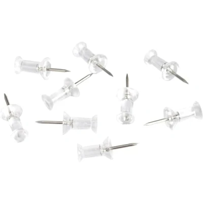 Push pins (100-count) for fastening papers, photos, and more to bulletin boards, including cork boards, foam boards, or paper boards Standard size with a strong 9 mm ground steel point and a 13 mm plastic head for easy insert and removal Clear plastic heads offer an inconspicuous professional appearance Clear container included for keeping the push pins neatly stored and easy to access Ideal for office, home, or classroom