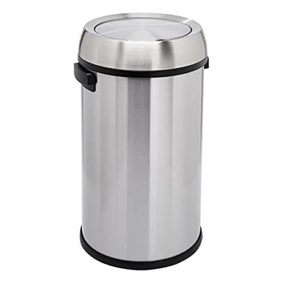 Round rubbish bin with swing lid for easy use Includes a 65-litre rubbish bin (no inner plastic bin); fingerprint-proof, smudge-resistant stainless steel exterior Lid lifts off effortlessly for quick liner replacement Side handles makes it easy to move the rubbish bin Product dimensions: 42 x 40 x 69 cm (LxWxH)