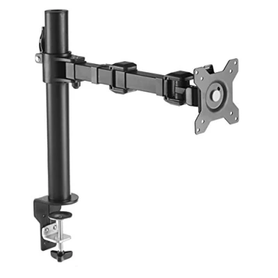 Desk-mounted single-monitor stand fits most screens 13 to 30 inches and up to 9.97 kg (per arm); fits desks 2.03 to 9.9 cm thick 360-degree rotation (for landscape or portrait mode); height-adjustable horizontal-arm mount adjusts from 20 to 36 cm high Full range of motion; adjustable screen tilt from -15 to +85 degrees; cable-management system keeps cords out of the way Easy set-up with a detachable VESA plate (100 x 100mm and 75 x 75mm); all necessary tools and hardware included; made of durable steel