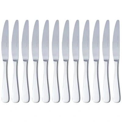 Amazon Basics Stainless Steel Dinner Knives With Round Edge, Pack of 12, Silver