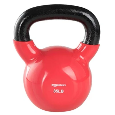 35 pound kettlebell weight for exercise and strength training Solid cast iron with Red vinyl coating that protects floors, reduces noise, and prevents corrosion Flat base for stay-in-place storage; weight clearly printed on both sides Textured, wide, curved handle offers a comfortable, secure grip; hold with one hand or two Available in multiple color-coded weight sizes to mix and match for specific workout needs and to expand on over time (additional weights sold separately) Great for agility training, cardio, endurance, squats, lunges, and more