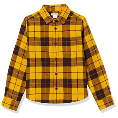 Amazon Essentials Boys' Flannel Button Down Shirt, Yellow Plaid, 6 7 Years