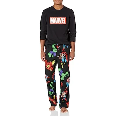 Amazon Essentials Disney Marvel Star Wars Men's Flannel Pyjama Sleep Sets, Avengers Mens Flannel, XS