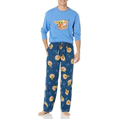 Amazon Essentials Disney Marvel Star Wars Men's Flannel Pyjama Sleep Sets, Grogu Mens, XS