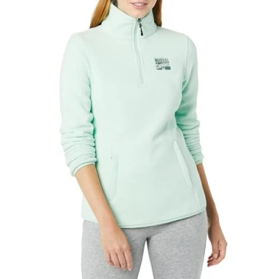 Amazon Essentials Disney Marvel Star Wars Princess Women's Polar Fleece Quarter Zip Mock Jackets, Comic Logo, XL