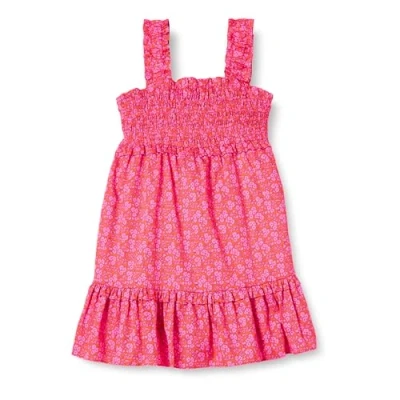 Amazon Essentials Girls' 100% Cotton Smocked Tank Dress, Hot Pink Posey Floral, 11 12 Years