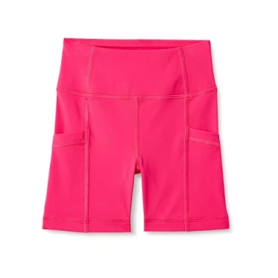 Amazon Essentials Girls' Athletic Total Train Dance Volleyball Bike Shorts with 4 (10cm) Inseam Pockets, Hot Pink, 5 Years