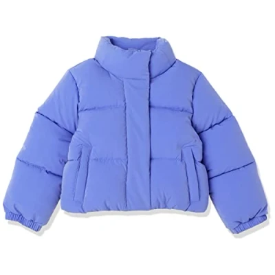 RELAXED FIT: Relaxed, comfortable fit through the body. HEAVYWEIGHT PUFFER: Durable heavyweight quilted coat. Fully lined, quilted, and insulated. Designed to keep you warm even on the coldest winter days. COLD-WEATHER STYLING: This cropped, mock-neck puffer is perfect for school, daily wear, or play regardless of what the cold weather brings. DETAILS: Featuring full-length zip with snap placket and fleece lined pockets, elasticated cuffs and internal elastic gathering at bottom opening to help keep the chill out, soft polyester fill for added warmth. WATER RESISTANT: This garment is not waterproof, but designed to be water-resistant.
