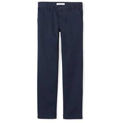Amazon Essentials Girls' Flat Front Uniform Chino Pant with Adjustable Stretch, Navy, 10