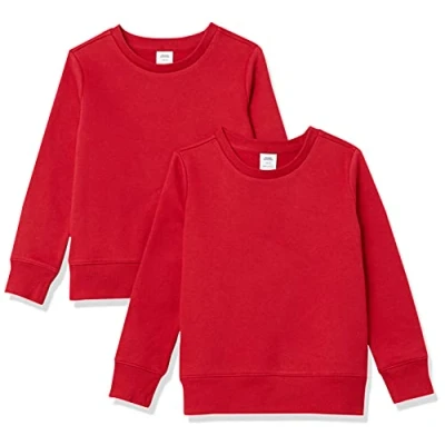 Amazon Essentials Girls' Fleece Crew Neck Pullover Sweatshirts, Pack of 2, Red, 10 Years