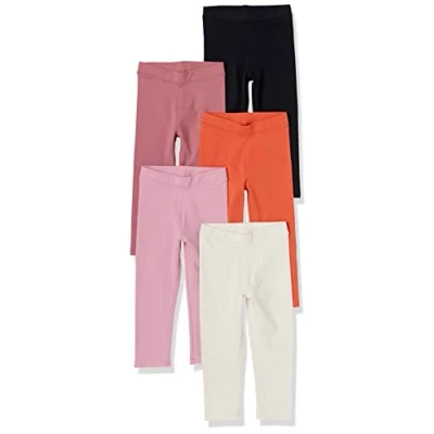 Amazon Essentials Girls' Leggings, Pack of 5, Black/Blush/Ivory/Orange/Pink, 10 Years