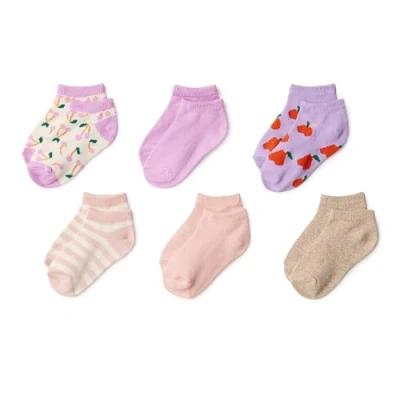 Amazon Essentials Girls' No Show Patterned Socks, 6 Pairs, Pink/Purple Fruit, Large (8 12 Years)