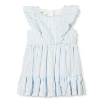 Amazon Essentials Girls' Ruffled Woven Dress, Light Blue Stripes, 3 Years