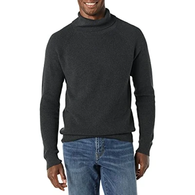 Amazon Essentials Men's 100% Cotton Rib Knit Turtleneck Jumper, Charcoal Heather, S