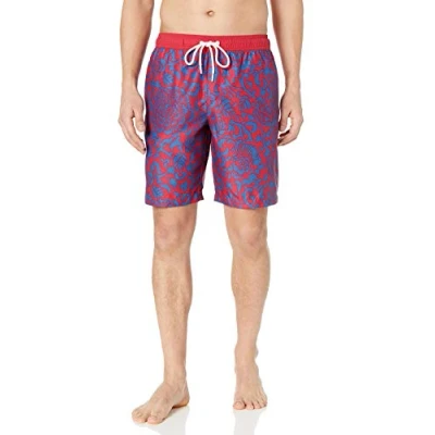 Amazon Essentials Men's 9" Relaxed Fit Quick Dry Swim Trunk Discontinued Colours, Dark Blue Red Vintage Floral, M