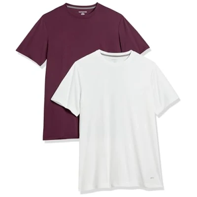 Amazon Essentials Men's Active Performance Tech T Shirt (Available in Big & Tall), Pack of 2, Burgundy/White, XL