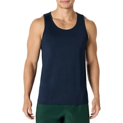 Amazon Essentials Men's Active Quick Dry Tech Stretch Lightweight Gym Tank Top, Navy, S