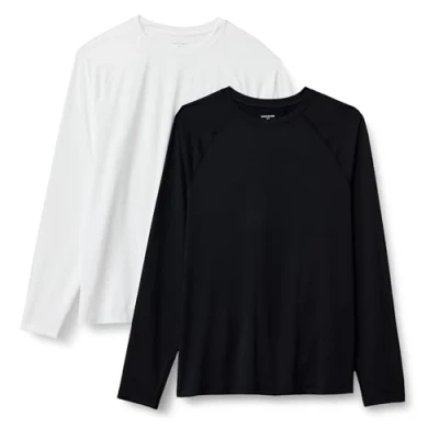 Amazon Essentials Men's Active Quick Dry Tech Stretch Lightweight Long Sleeve T Shirt (Available in Big&Tall), Pack of 2, Black/White, S