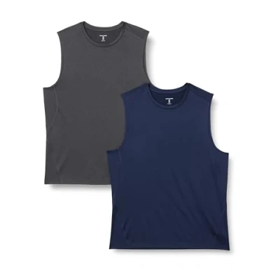 Amazon Essentials Men's Active Quick Dry Tech Stretch Lightweight Sleeveless Muscle Shirt, Pack of 2, Graphite Heather/Navy, S