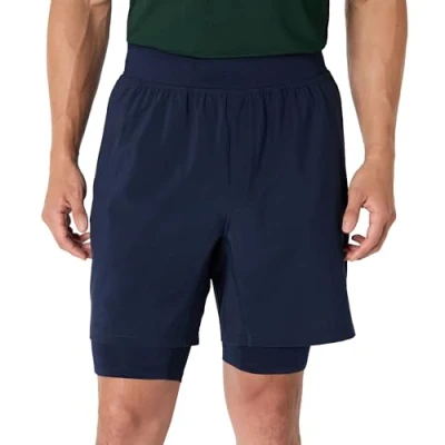 Amazon Essentials Men's Athletic Performance Stretch Woven Running Workout 7 (18cm) Training Short with Liner, Navy, S