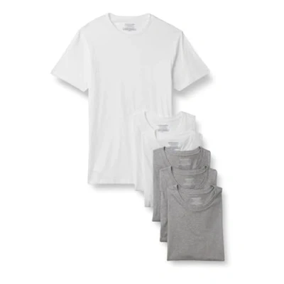 Amazon Essentials Men's Cotton Crew Neck Undershirts, Versatile Soft Basics, Pack of 6, White / Medium Grey Heather, M