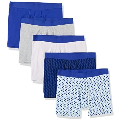 Amazon Essentials Men's Cotton Jersey Boxer Briefs (Available in Big & Tall), 5 Pack, Royal Blue/Mixed Print, Medium